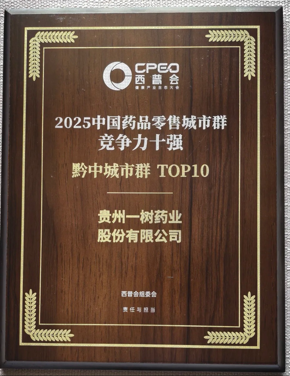 8月16日,备受行业关注的“2025中国药品零售城市群竞争力十强”榜单正式发布,贵州一树药业股份有限公司凭借在黔中城市群药品零售领域的稳健发展与突出实力,荣膺黔中城市群竞争力十强企业,这一荣誉不仅是行业对我们的认可,更是会员朋友长期以来信任与支持的有力见证。